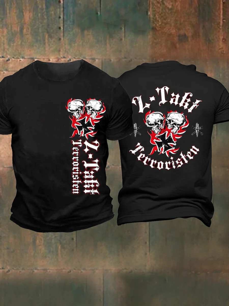 2-Takt-Terroristen bedrucktes Kurzarm-T-Shirt für Männer