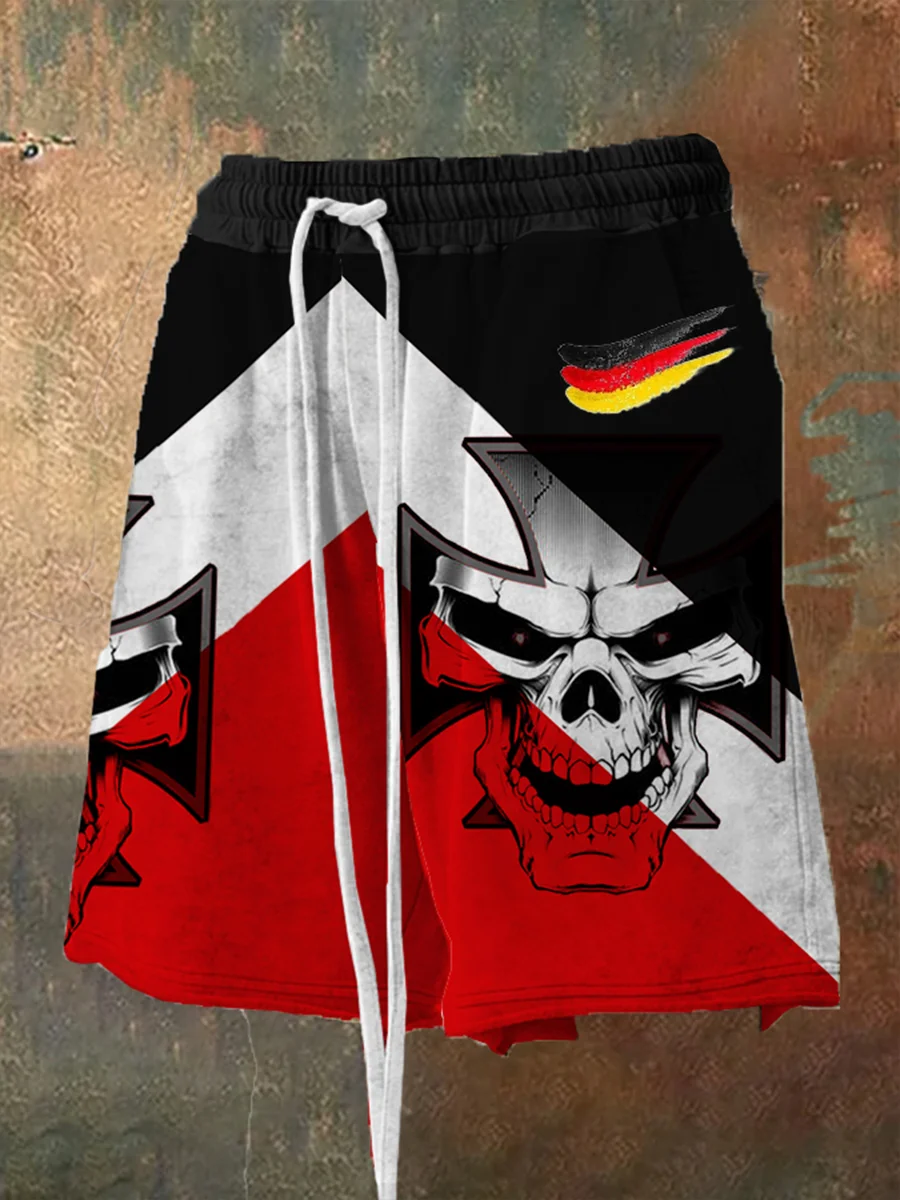 Herren Eisernes Kreuz Schädel druck Lässige kurze Hosen